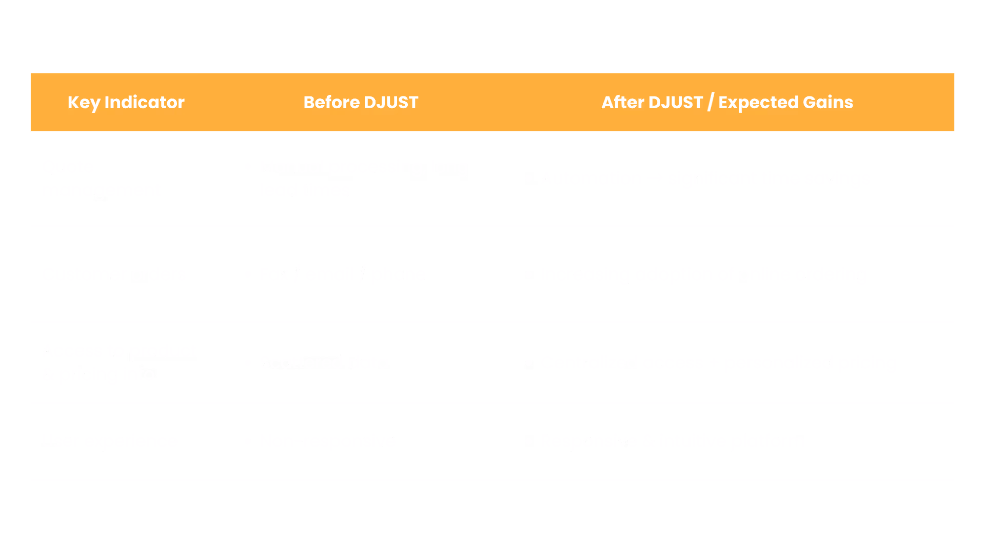 The DJUST solution modernizes customer relationships, optimizes internal workflows, and prepares the company to roll out new digital capabilities (online payments, end-to-end ordering, advanced automation).