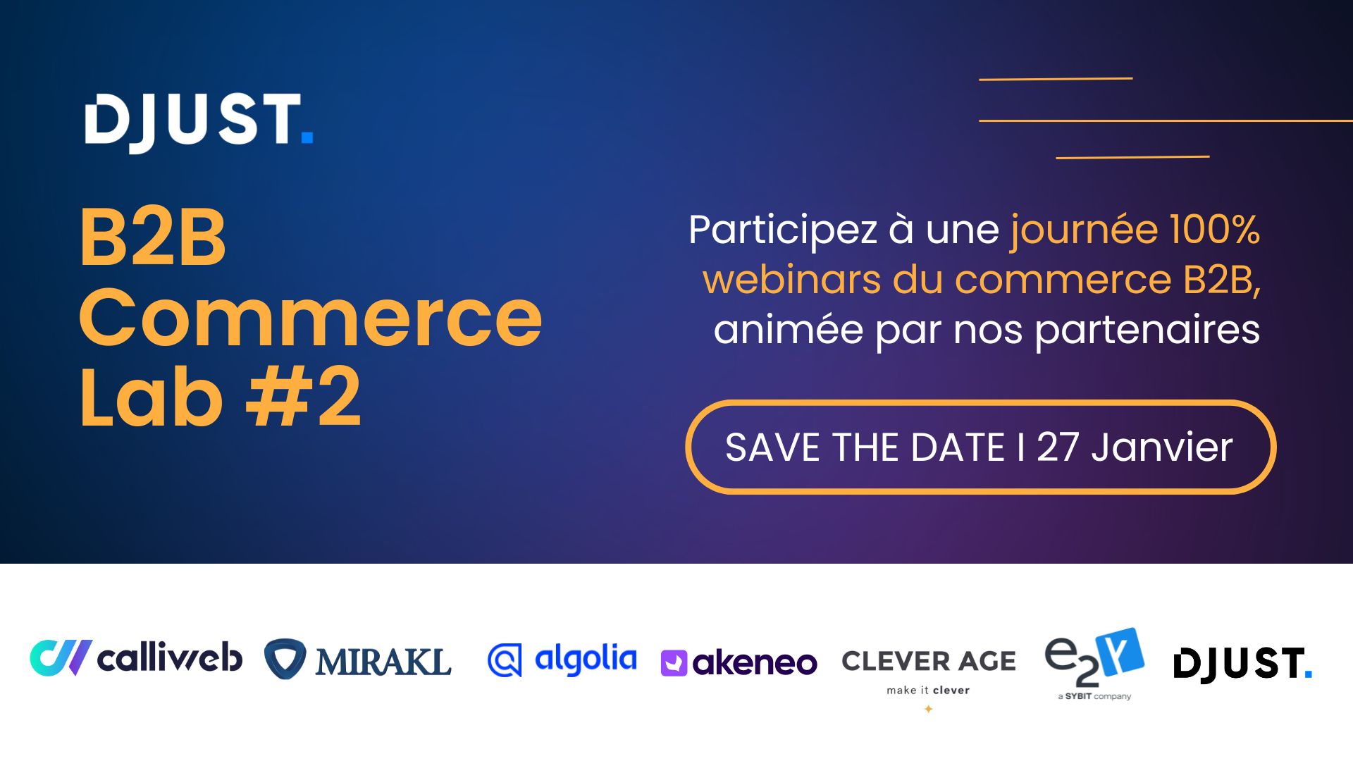 🗓️ Après le succès de la première édition, DJUST relance le B2B Commerce Lab, sa journée partenaires dédiée aux grandes évolutions du commerce B2B.